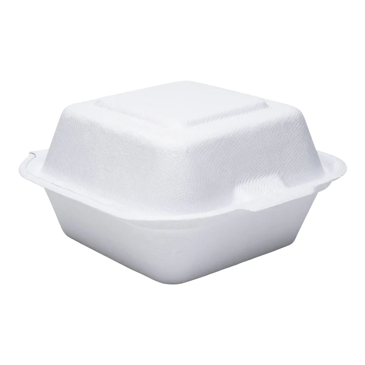 Hinged Sandwich Container, Compostable, 5.7” x 5.7” x 3”